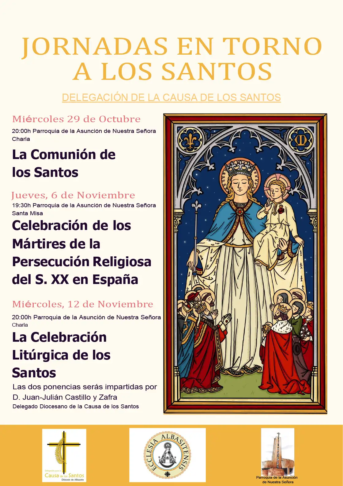 Causa de los Santos: Charla “La comunión de los Santos”📅 29 de octubre de 2025 ⏰ 20:00 - 21:00📍 Parroquia de Ntra. Sra. de la Asunción Ver en mapa