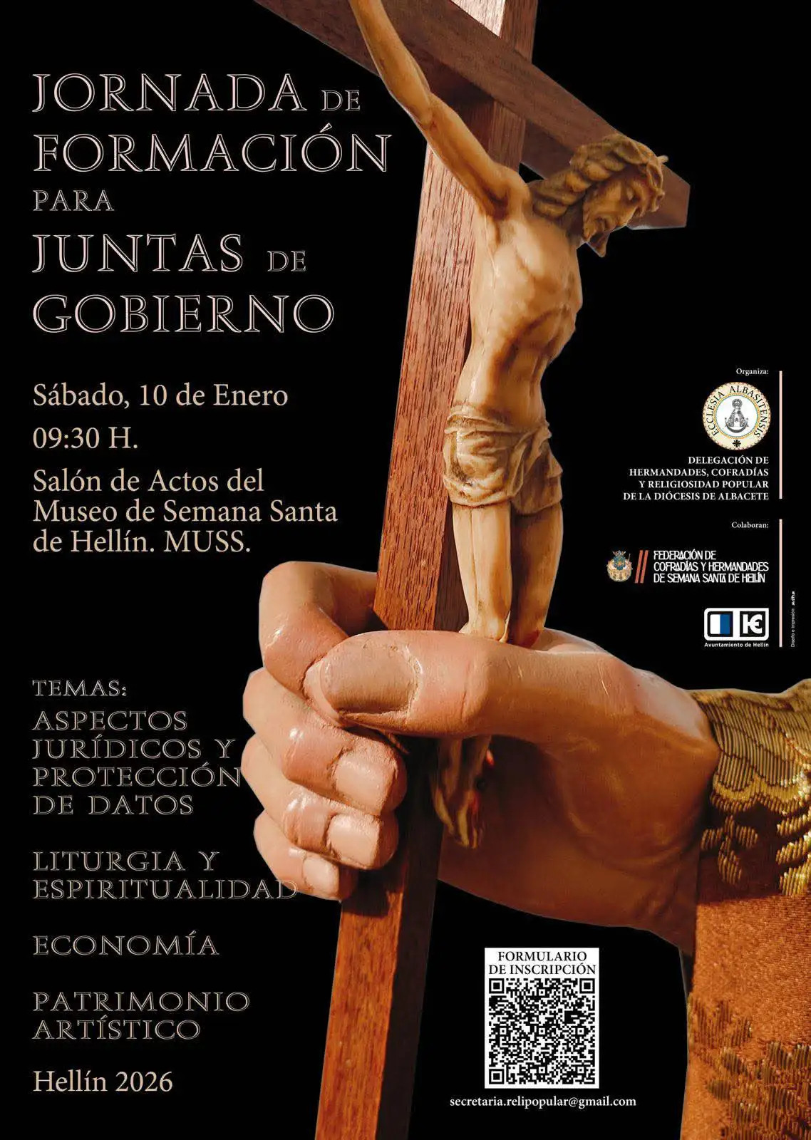El sábado 10 de enero, a las 9:30 h, tendrá lugar en el Salón de Actos del Museo de Semana Santa de Hellín (MUSS) una Jornada de Formación para Juntas de Gobierno, organizada por la Delegación de Hermandades, Cofradías y Religiosidad Popular de la Diócesis de Albacete.