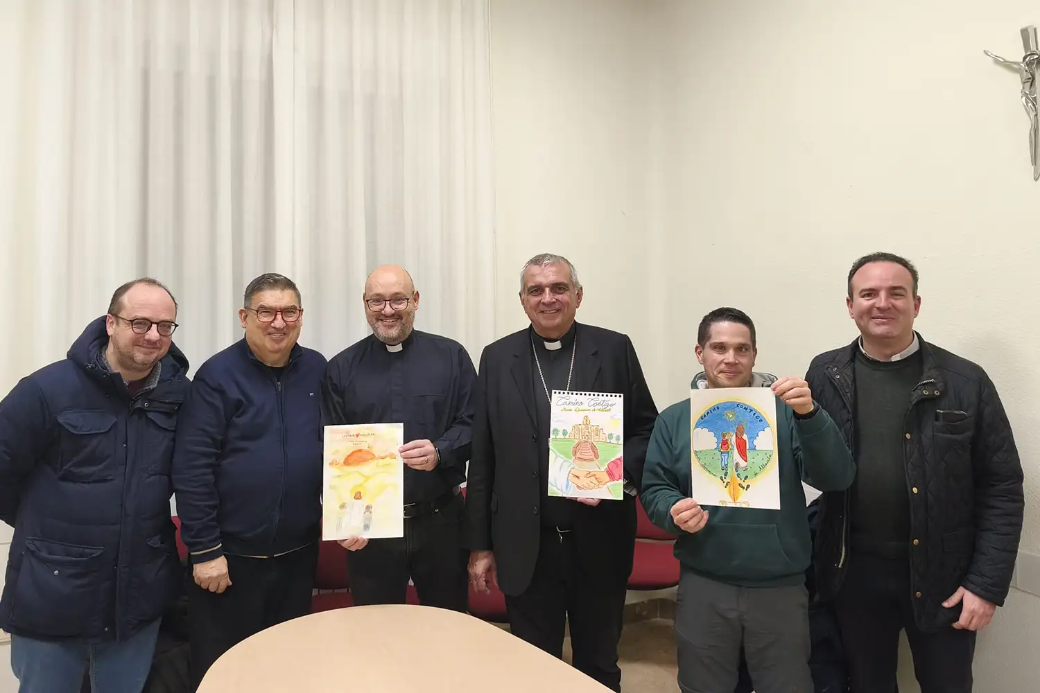 Tras la deliberación del jurado, reunido en presencia del Sr. Obispo, el primer premio ha sido concedido a Elisabeth Quintanilla Pedreño, alumna del colegio Nuestra Señora del Rosario de Albacete. Su cartel presenta un camino que conduce al corazón de la Iglesia diocesana, simbolizado en el templo, mientras dos manos unidas en primer plano expresan el acompañamiento, la cercanía y la comunión que inspiran el lema «Camino contigo». La obra destaca por la sencillez de sus trazos, el uso expresivo del color y la claridad con la que transmite los valores de unidad, fraternidad y esperanza propios de la Misión Diocesana. Jurado compuesto por varios delegados diocesanos: misiones, familia, catequesis, enseñanza, hermanos paúles y, D. Ángel.
